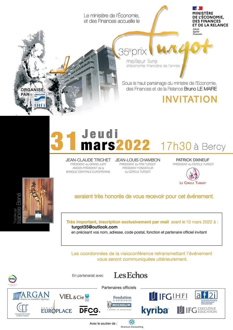 Invitation au 35e Prix Turgot jeudi 31 mars 2022 à 17h30 à Bercy